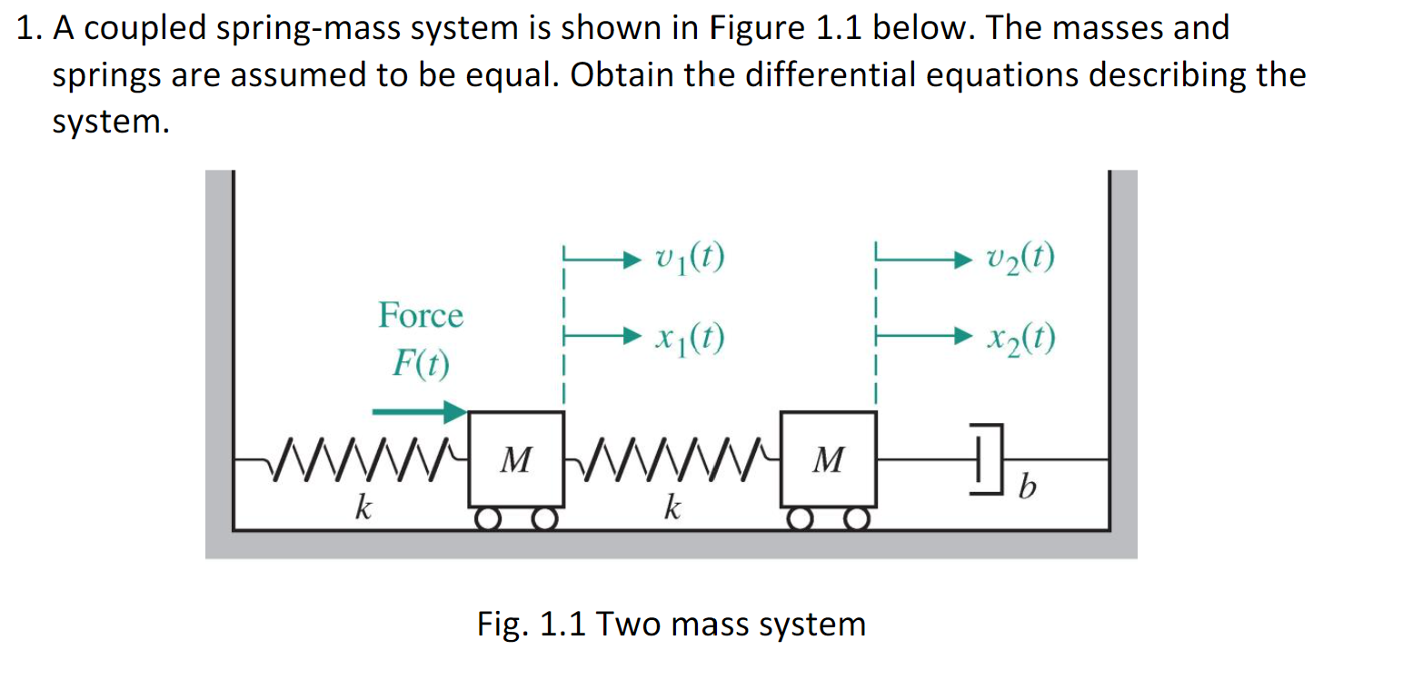 The solution to the eigenvalue. This figure shows the system to be modeled. The scenario is the following we have. Free vibrations of a MDOF vibration problem leads to an eigenvalue problem. We assume that the lengths of the springs when subjected to no external forces are L_1 and L_2. System 1 models the vibration dynamics of the coupled spring-block conguration. Coupled Spring Mass system. Using Newtons Second Law we can find equation of motion for each mass ie. At a given point the force that the right portion of the spring exerts on the left portion will be Txtand conversely the force that.